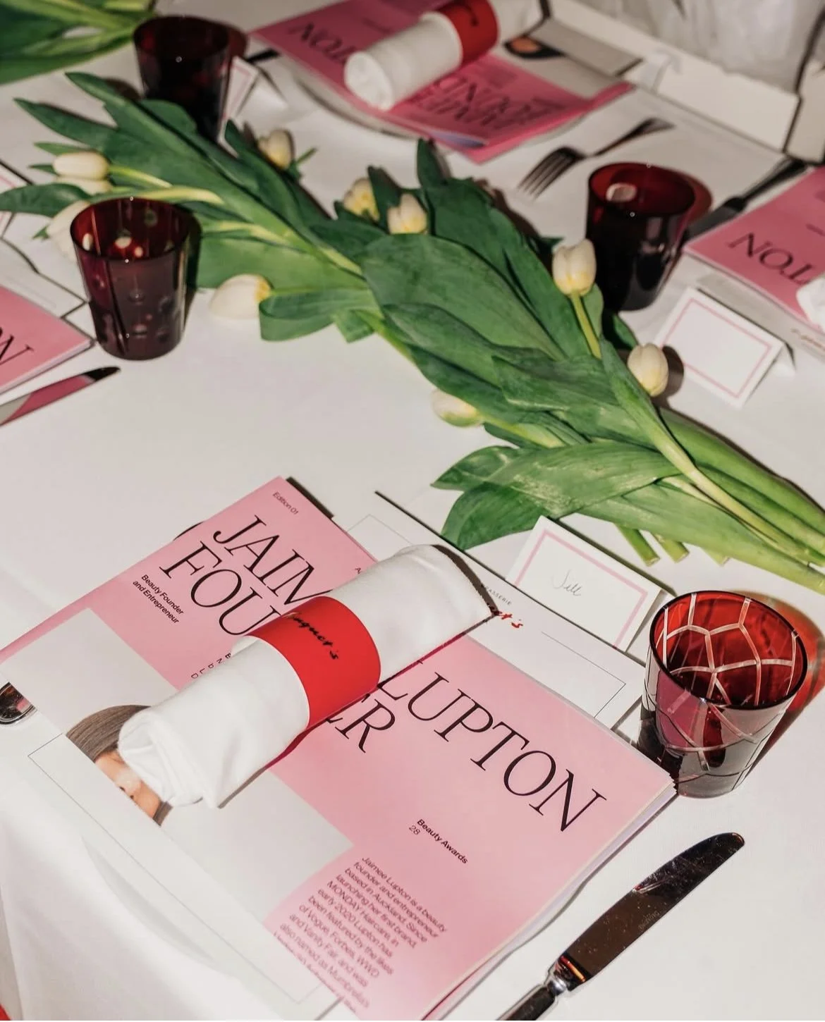 Working alongside one of my peers, I was tasked with designing the event collateral — including invitations, menus, notecards, and a custom newspaper placed at each guest’s setting. One of the biggest creative challenges was finding a way to visually unify the unique identities of each brand while still allowing their individual voices to shine. Through considered typography, colour palettes, and layout systems, we created a cohesive yet flexible design language that honoured the personality of each brand and brought them together in a seamless, elevated experience.